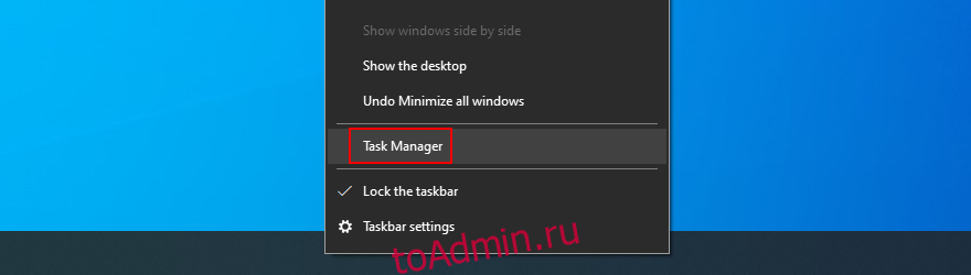 Щелкните правой кнопкой мыши панель задач и выберите Диспетчер задач.
