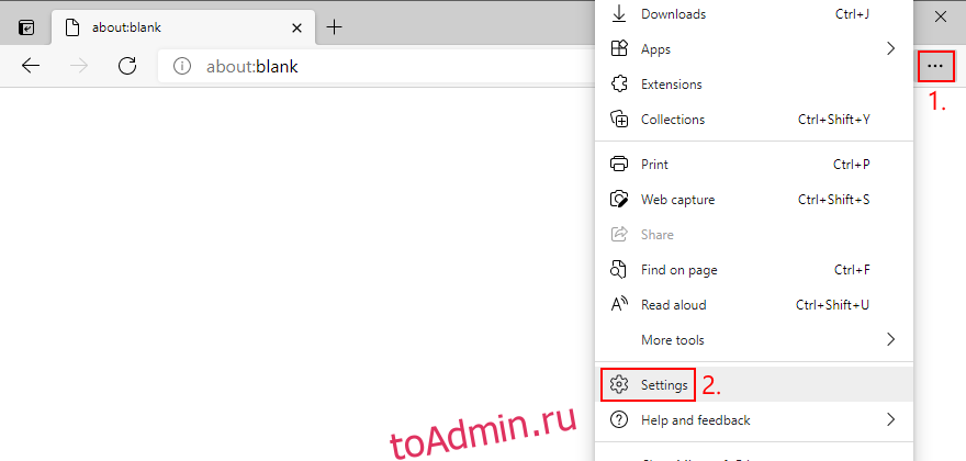 Открытый крайНажмите кнопку «Дополнительно» в правом верхнем углу.Открыть настройки