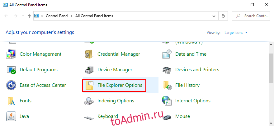 Нажмите клавиши Win + R, введите панель управления и нажмите Enter.Перейдите в Параметры проводника