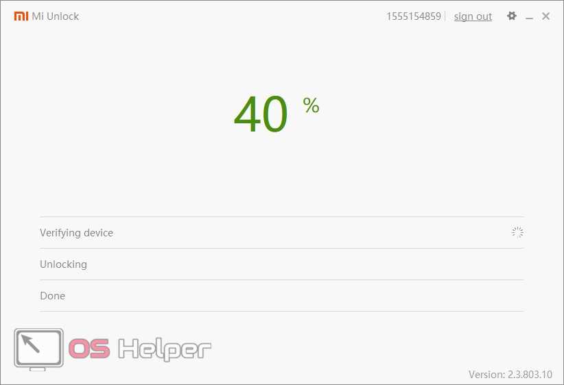 Когда мы получим сообщение о подтверждении запроса, можно приступать непосредственно к самой разблокировке.