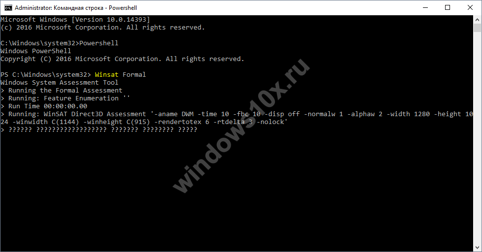 Чтобы активировать средство оценки системы, в консоли введите winsat formal и нажмите Enter.