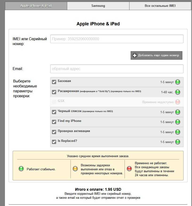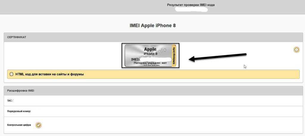 Альтернативный метод проверки при помощи сайта https://www.imei.info/.