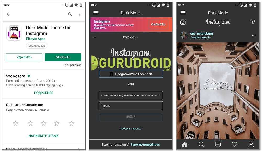 Разработчики Инстаграма пока не внедрили в официальное приложение черный фон. Из-за этого приходится искать альтернативы на просторах Google Play. Сейчас единственной утилитой такого формата является Dark Mode Theme For Instagram. Это сторонняя программа, являющаяся аналогом официального приложения Instagram.