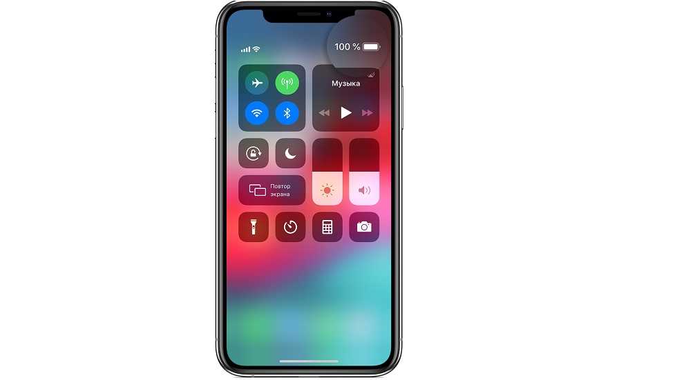 1) Откройте панель управления — на «иксах» для этого достаточно провести пальцем вниз из верхнего правого угла. Вы увидите процент заряда батареи в правом верхнем углу. Да, всё настолько просто.
