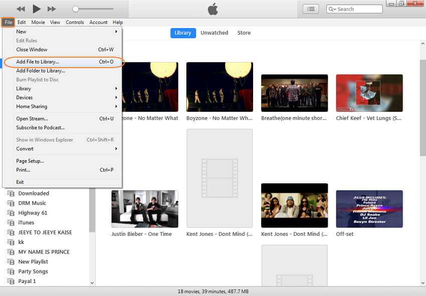 Шаг 1: Откройте iTunes на своем компьютере и нажмите «Файл» > «Добавить файл в библиотеку». Найдите и добавьте файлы MOV из вашей системы и нажмите «Открыть», чтобы добавить их в iTunes.