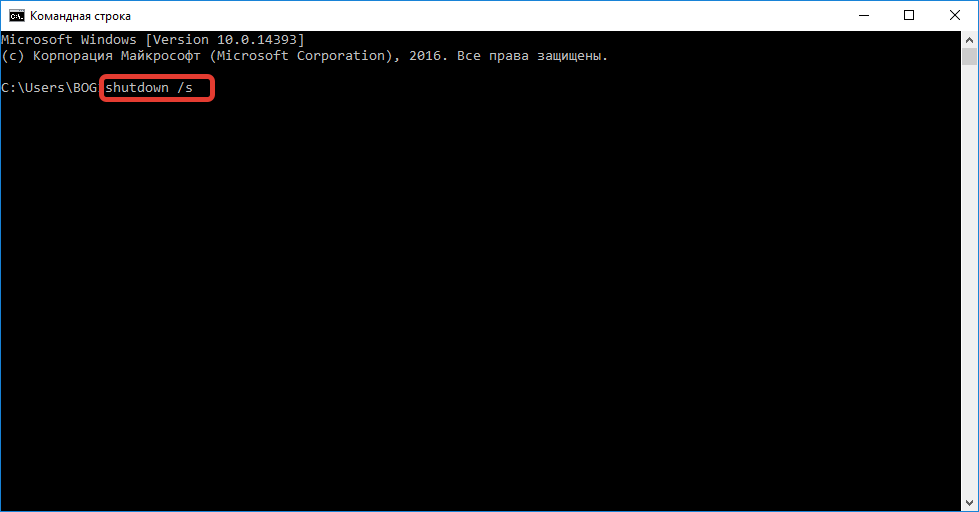 «Командная строка» — универсальный инструмент для взаимодействия с системой. Чтобы выключить компьютер посредством консоли, необходимо сделать следующее: