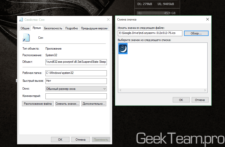 Выбираем ярлык, который вам нравится. Я обычно ищу png файл с понравившемся мне значком и конвертирую его в PNG2ICO online конвертере. PNG нужен, так как это единственный формат, нормально поддерживающий прозрачный фон. Жмем ОК в обоих окнах.