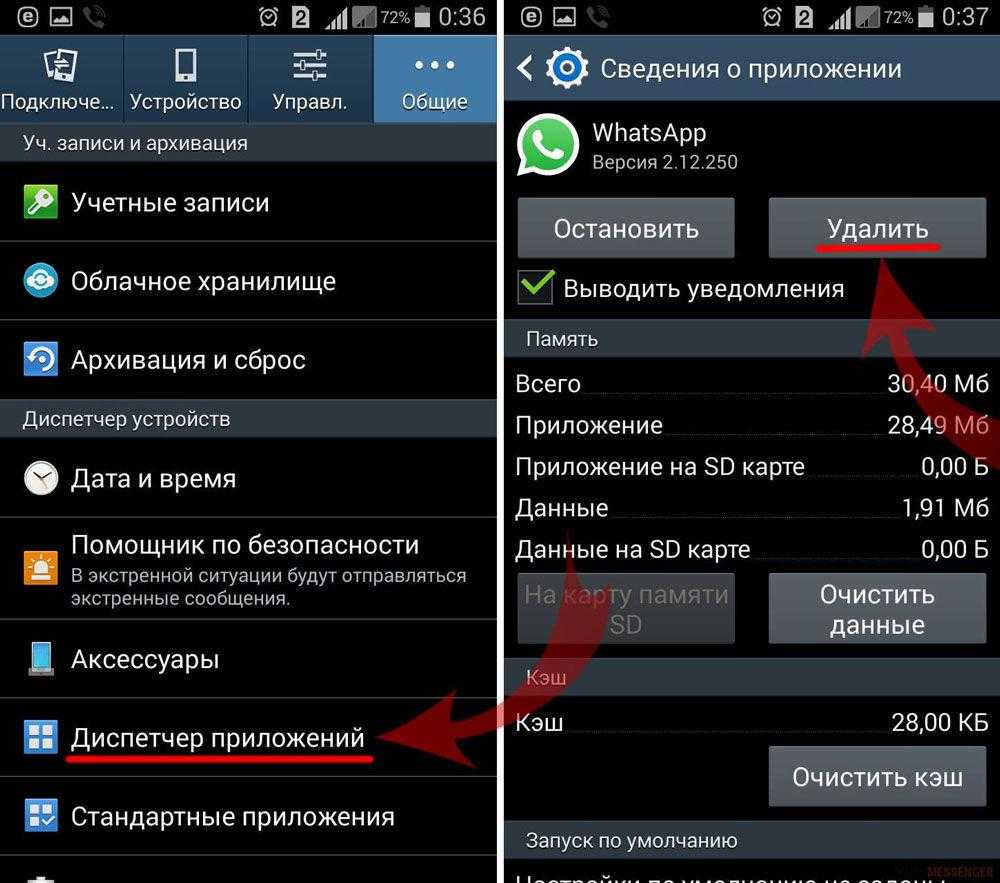 В случае повторной установки происходит ссылка на существующие файлы, которые самим инсталлятором определяются, как устаревшие версии, вызывающие конфликт. При этом в отличие от тех же версий ОС Windows система Android не дает разрешения на их замену. Вот и получается, что приложение вроде бы и обновленное, а кэш старый.