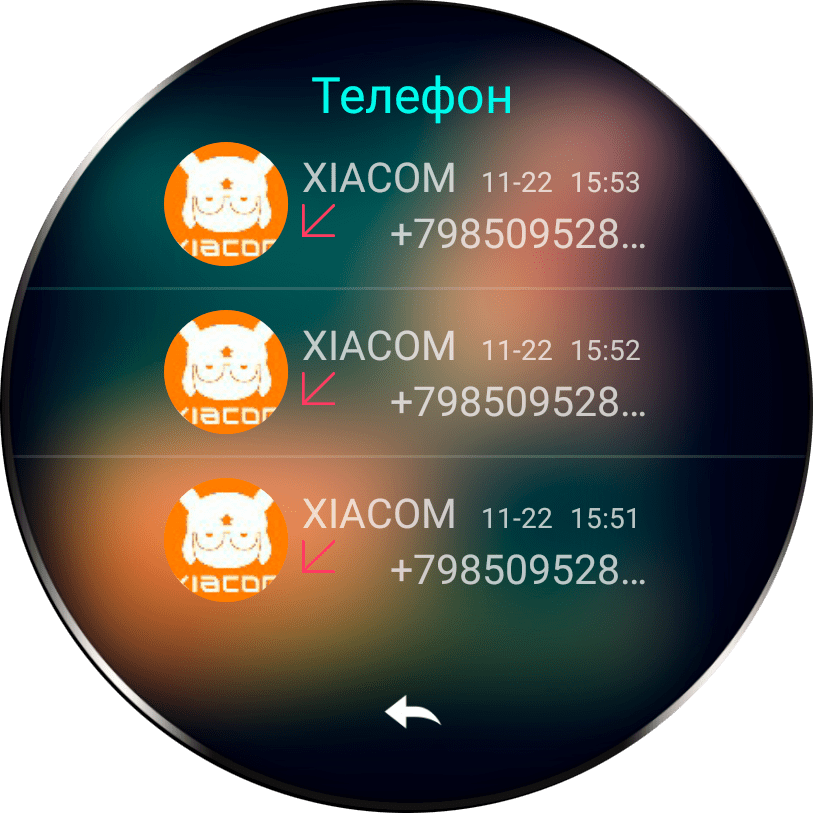 Для возврата в основное меню следует прикоснуться к стрелке, находящейся в нижней части дисплея.