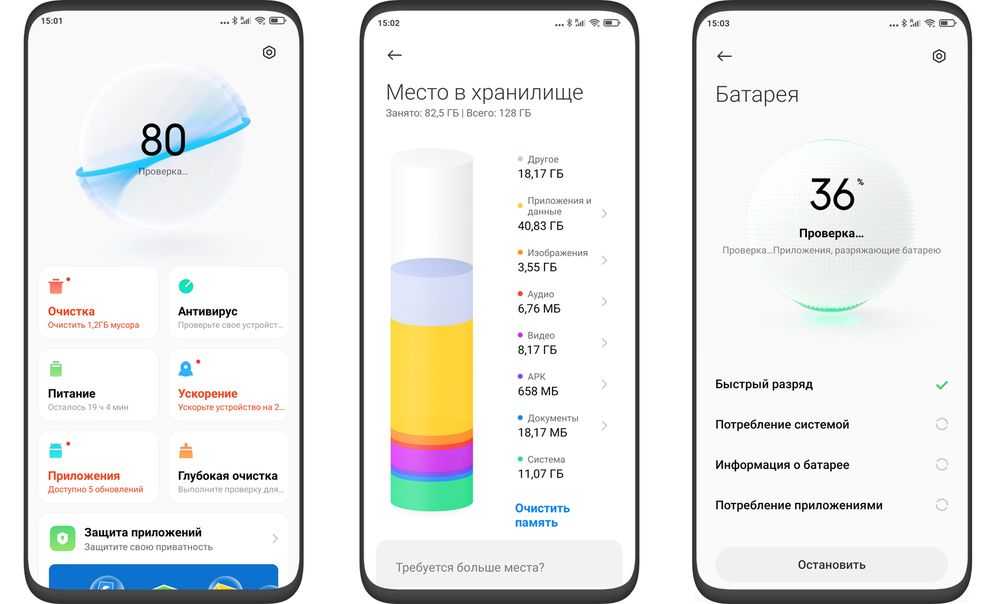 Приложение «Безопасность» является стандартным для всех устройств с MIUI и предоставляет пользователю инструменты для обслуживания операционной системы. В её состав входит 6 утилит.