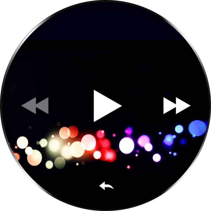 “Музыкальный плеер”. Можно воспроизвести трек, поставить его на паузу, перейти к следующей или предыдущей музыкальной композиции.”